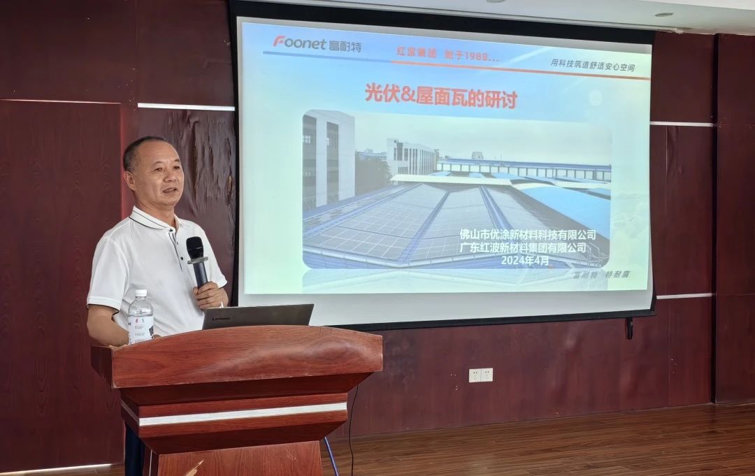會(huì )議初始,紅波集團總裁廖玄戈講述了太陽(yáng)能光伏產(chǎn)業(yè)的發(fā)展歷程,同時(shí)指出了在光伏行業(yè)中各類(lèi)材料的屋面瓦的現狀及弊端,并提出了解決方案。