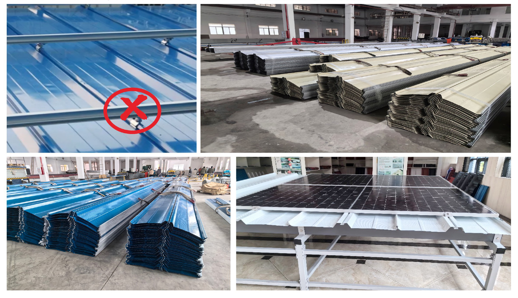 富能光伏一體瓦專(zhuān)利產(chǎn)品,自帶“導軌”,可以用:彩涂板、鋁鋅鎂板、鋅鋁鎂板、氟塑板(耐腐蝕廠(chǎng)房專(zhuān)用)來(lái)成型,相比于傳統角馳760瓦型和角馳820瓦型,具有以下優(yōu)勢。