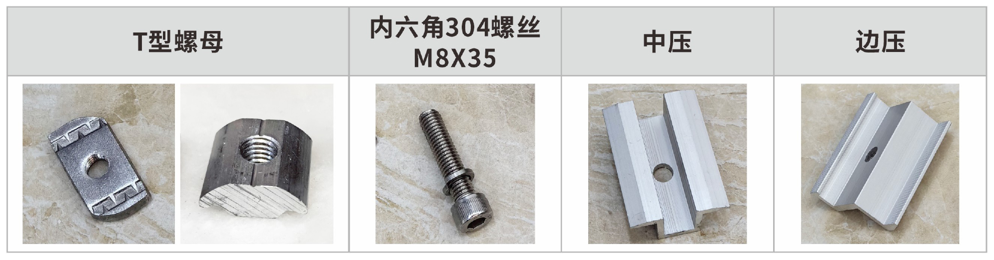 (3)安裝光伏板效率更高,只需T型螺母、M8*35內六角螺絲、中壓、邊壓即可,安裝效率大幅度提升。