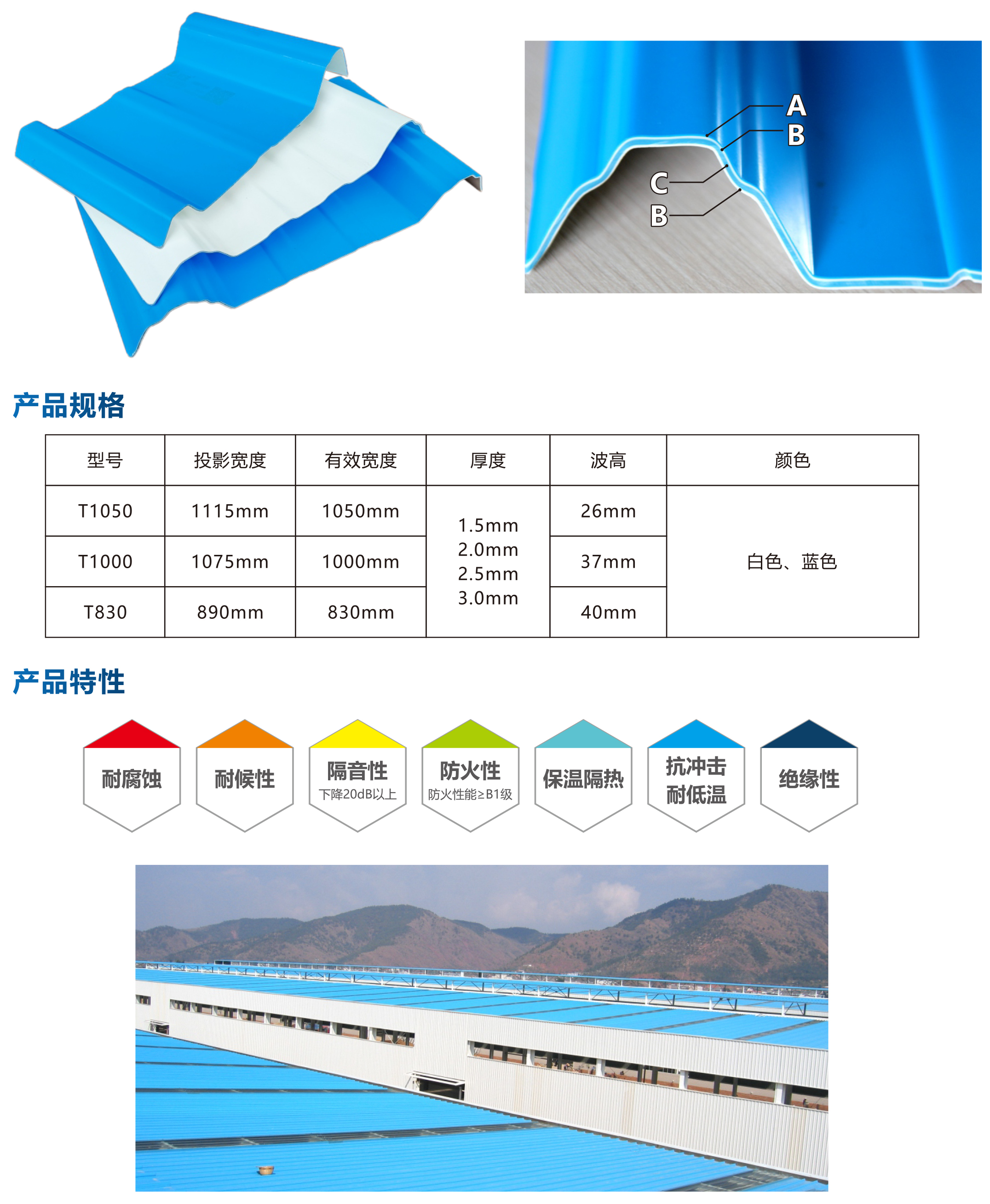 APVC防腐瓦采用四層共擠技術(shù)(ABCB)一次加工完成,其中表面材料A層為超耐候性樹(shù)脂,確保產(chǎn)品的耐光性和耐化學(xué)